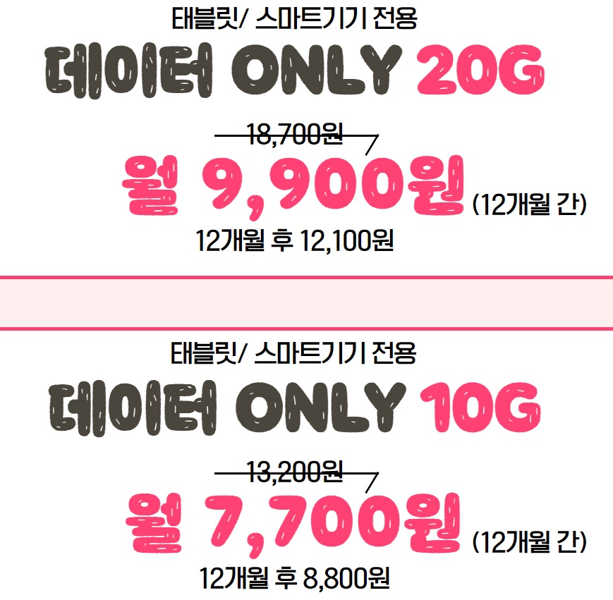 다른 통신사의 망을 사용하는 데이터 전용 유심 요금제는 아직 정확한 내용이 없네요.