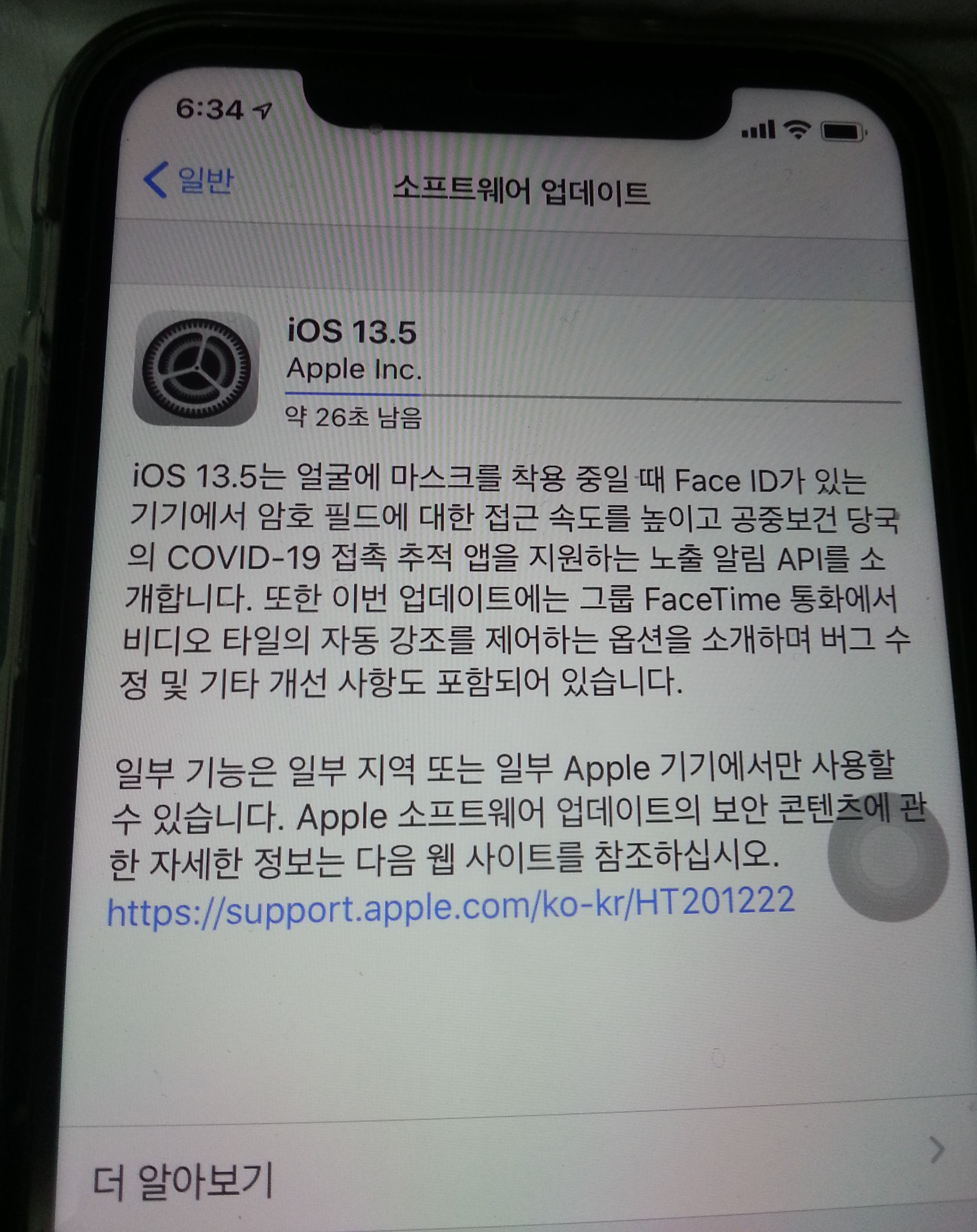 아마도, iOS 13.5 버전에는 버그 패치 뿐만 아니라, 코로나 바이러스 관련 의료 정보 API 등도 구글과 함께 추가하여 급하게 베포한 것이 아닌가 싶습니다.