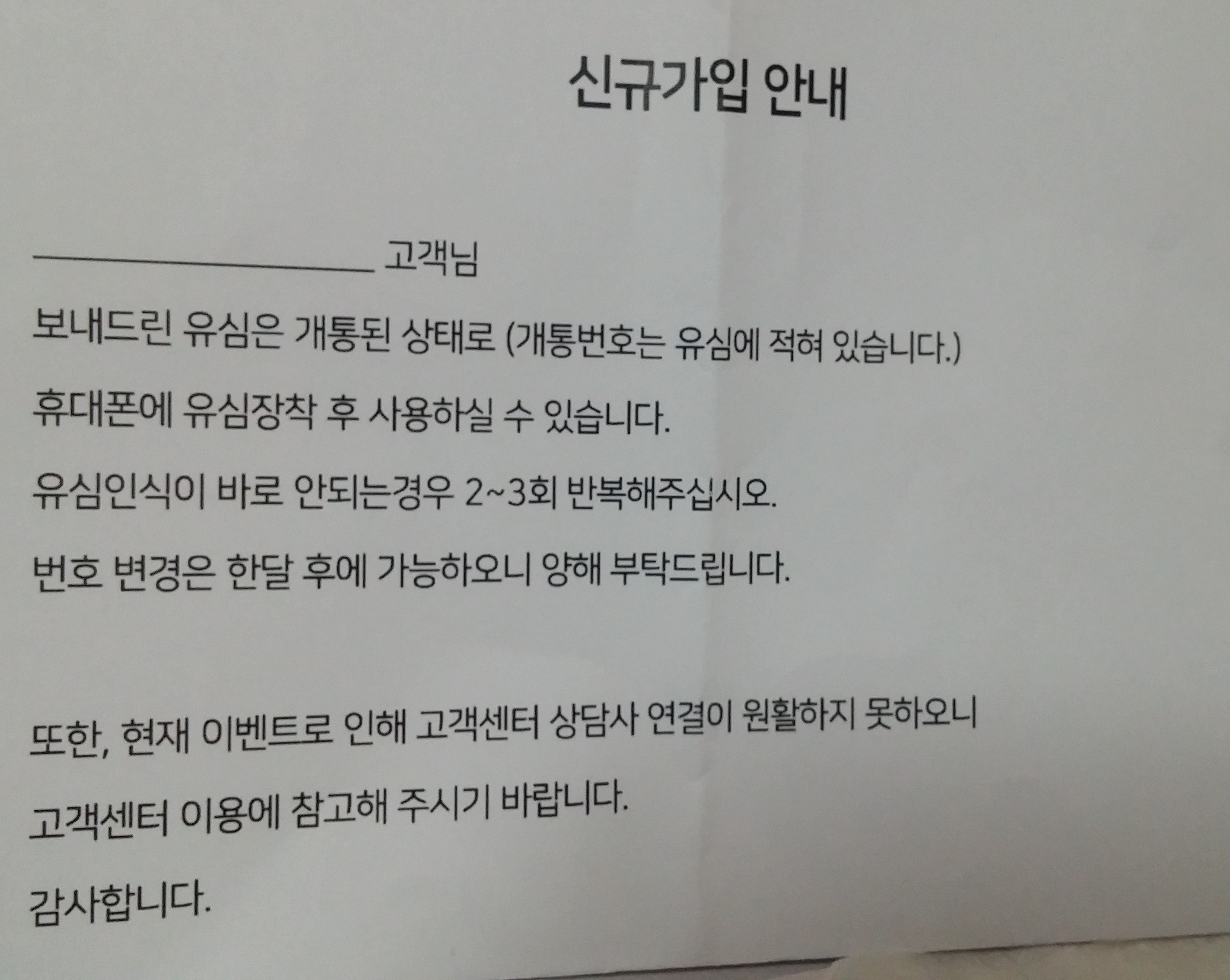 5월 30일이 신청하여 오늘에서야 유심을 택배로 받았구요.