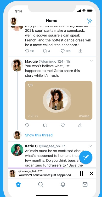 사람들은 자신의 음성 트윗이 다른 트윗과 함께 타임 라인에 나타납니다.