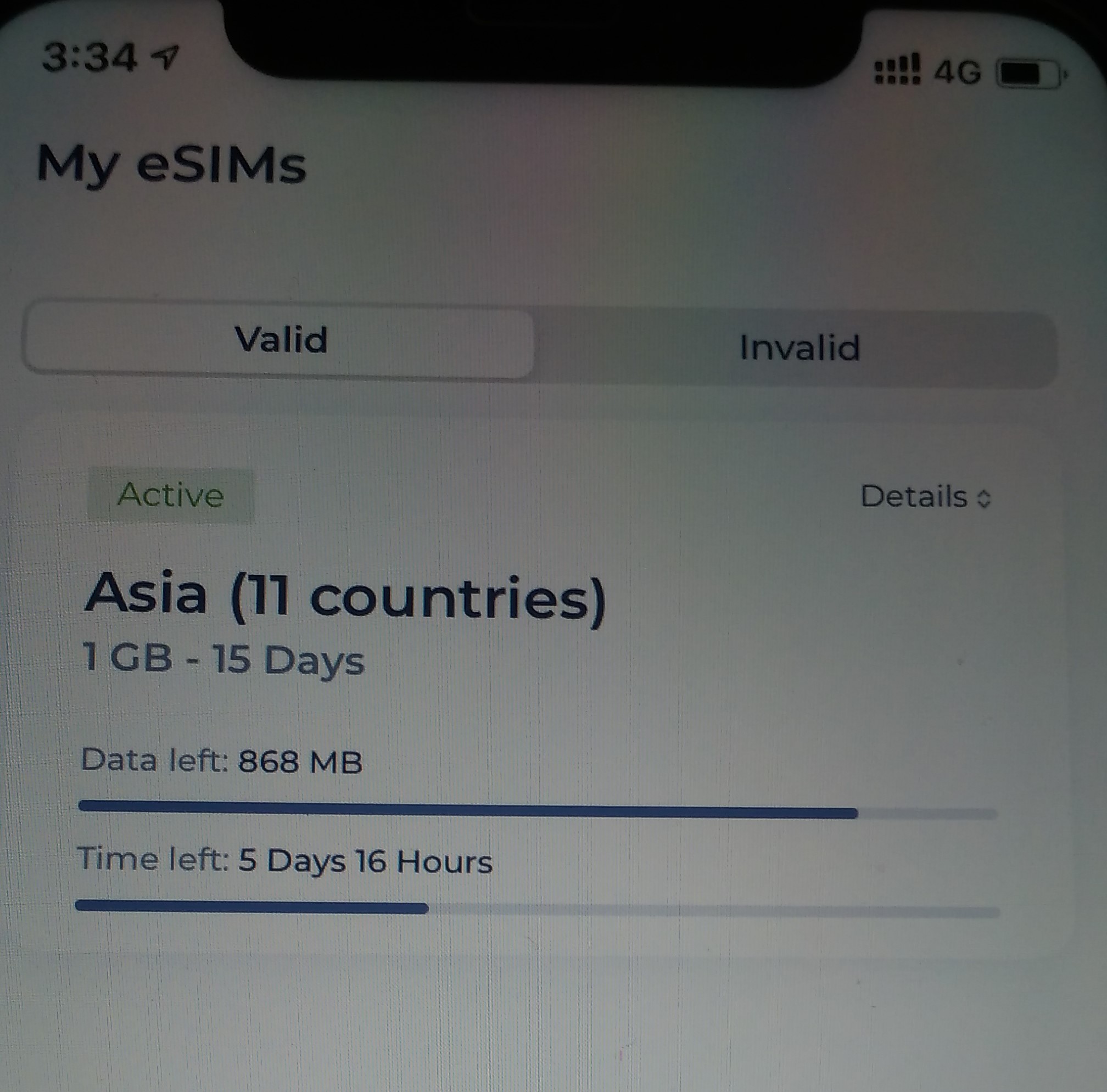 홍차 eSIM의 사용 가능 날짜가 5일 남았네요.