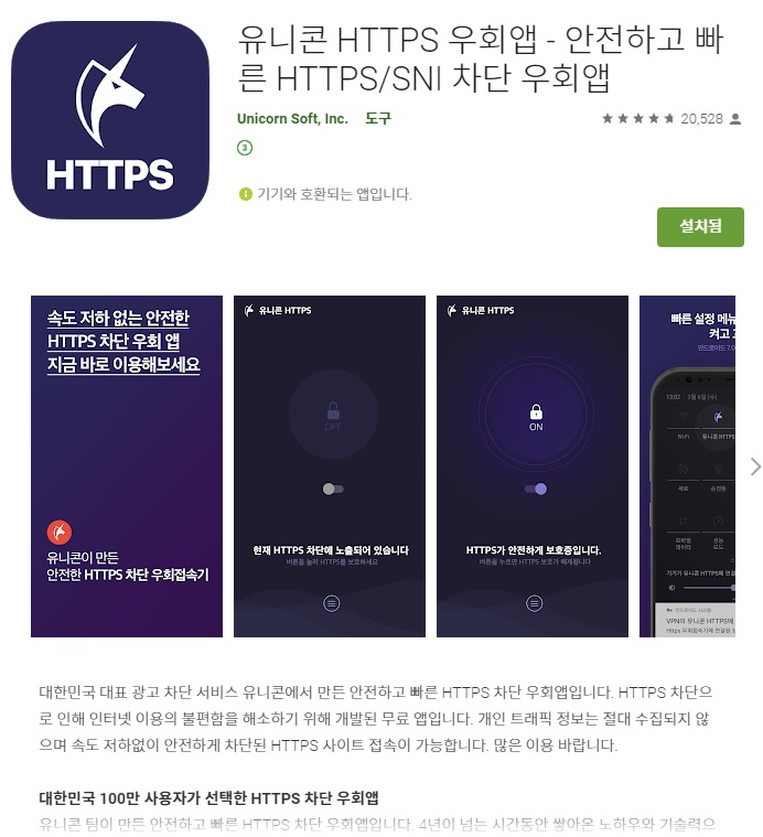유니콘 HTTPS 우회앱 - 안전하고 빠른 HTTPS/SNI 차단 우회앱 - Google Play 앱