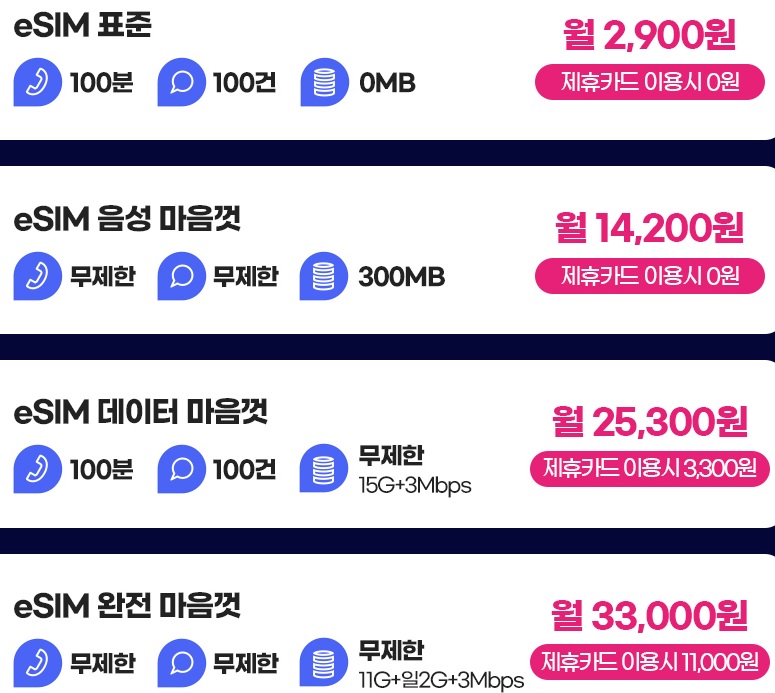 해외에 나가서 eSIM 으로 데이터 구입하여 사용하는 것과 별차이가 없게 되었네요.