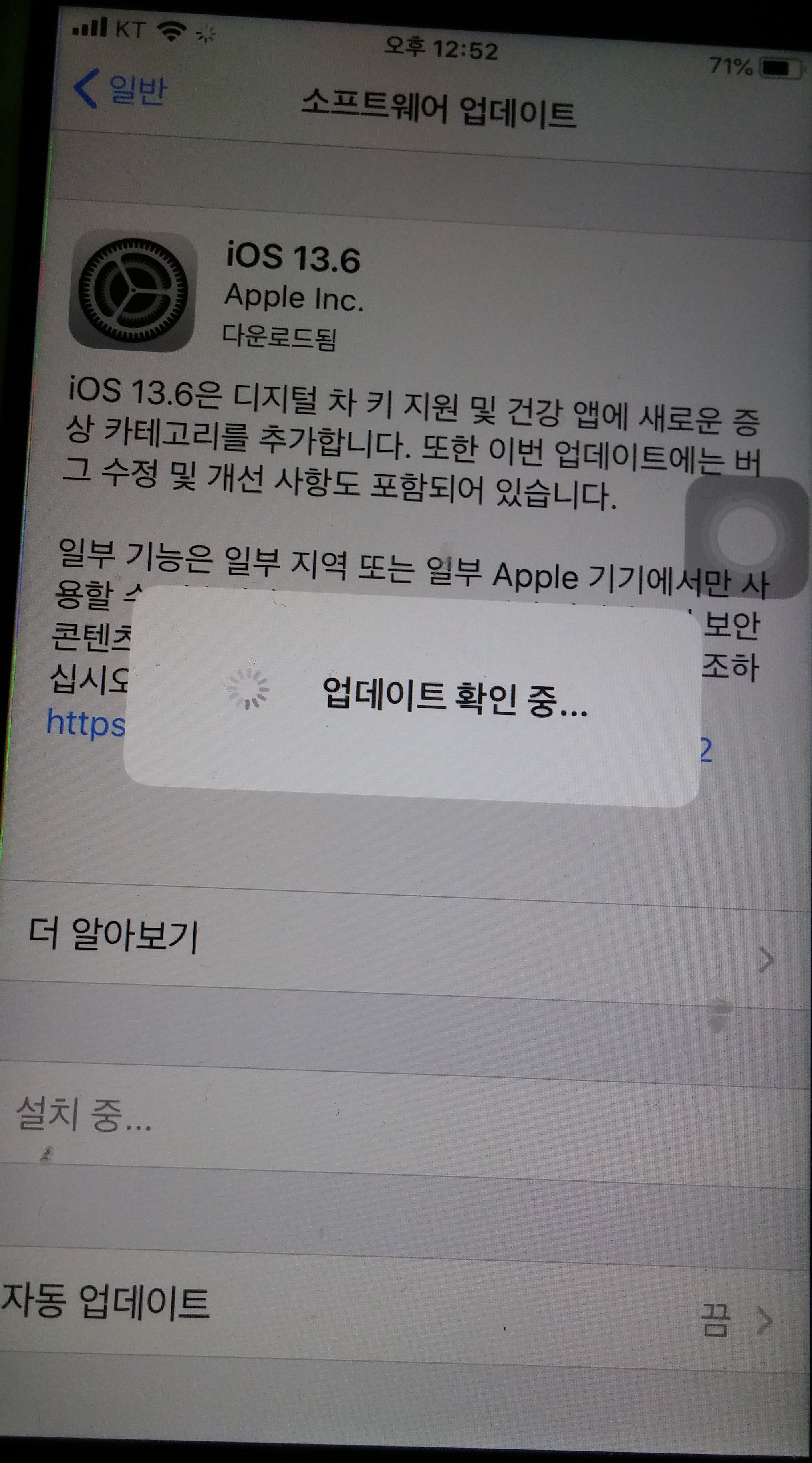 iOS 13.5.1 에서 13.6 으로 업데이트 하는겁니다.