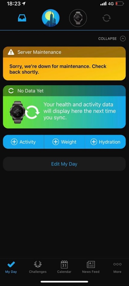 “We are currently experiencing an outage that affects Garmin Connect, and as a result, the Garmin Connect website and mobile app are down at this time. (1/2)”