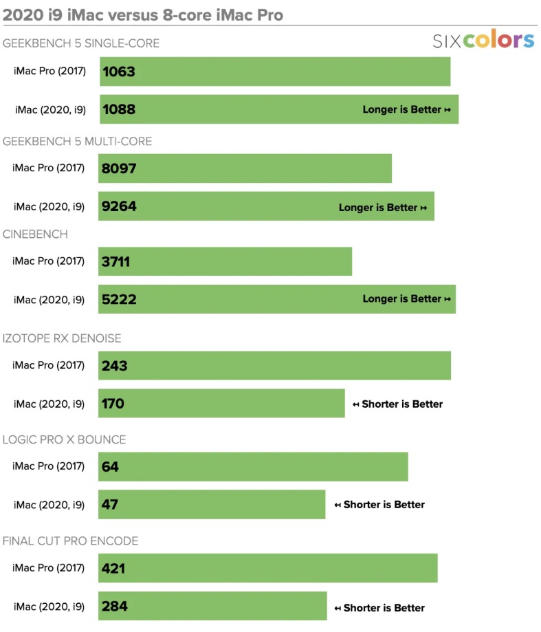 테스트에서 10코어 i9 iMac 구성이 8코어 iMac Pro를 능가했기 때문에 아마도 좋은 결과라고 생각됩니다.