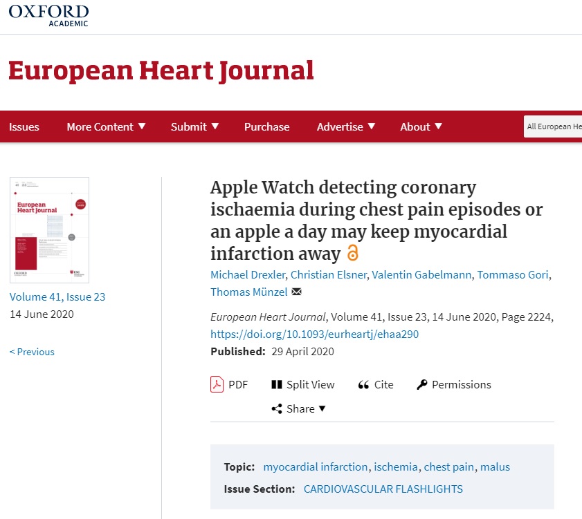 European Health Journal의 기사에 따르면 Apple Watch를 사용하여 심근 허혈을 감지할 수 있습니다.