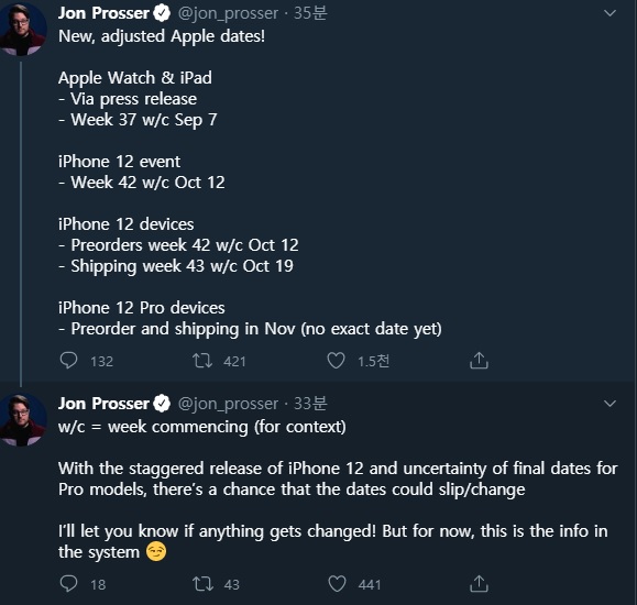 애플 기기의 출시일과 스펙을 자주 유출하는 분이 또 트위터에 한마디 했다네요. 정확한 정보라서 다들 지금까지 믿고 보는 분같은데, 이번에도 꽤 상세한 정보를 흘렸습니다.