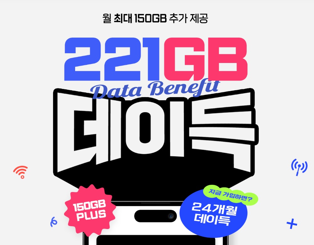 먼저, KT망 알뜰폰 요금제 중에서 데이터 무제한 요금제에 가입하면, 24개월간 매달 150GB 데이터를 더 주는 이벤트를 시작합니다.
