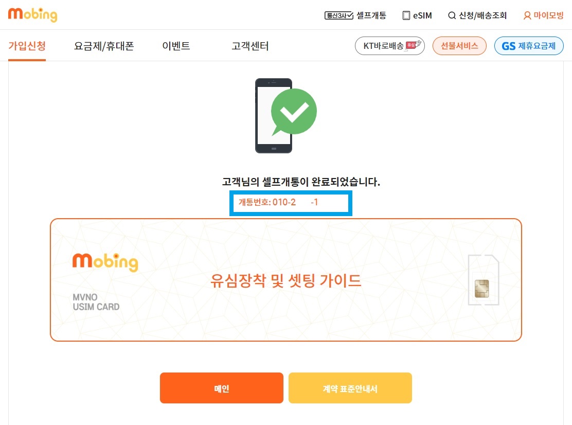 셀프개통은 별다른 어려움 없이 무난하게 진행되고.