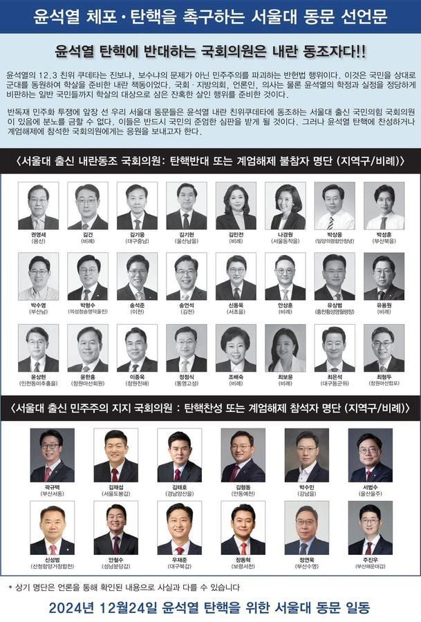 넋두리 서울대 동문들이 신문에 낼 광고 by 빈폴청바지 2024. 12. 25. 728x90 728x90 공유하기 게시글 관리 생산적 활동 (A Vital Activity) 관련글 페이코 결제 리워드 변경 (25년 2월 1일부터) [긴급 공동성명] 언론노조 어떤 언론도 내란범의 입이 되어서는 안 된다 12.3 내란선동 시국선언 123명 교수 명단 (내란동조 또는 내란선전) * 드라마 시나리오