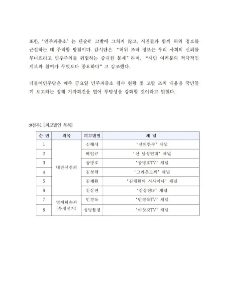 넋두리 민주당 내란선전 혐의 유투버 고발 by 빈폴청바지 2025. 1. 10. 728x90 728x90 공유하기 게시글 관리 생산적 활동 (A Vital Activity) 관련글 매불쇼 - 신남성연대 배인규가 네이버 댓글 조작팀 운영 백골단과 대치 중인 최민희 페이코 결제 리워드 변경 (25년 2월 1일부터) [긴급 공동성명] 언론노조 어떤 언론도 내란범의 입이 되어서는 안 된다