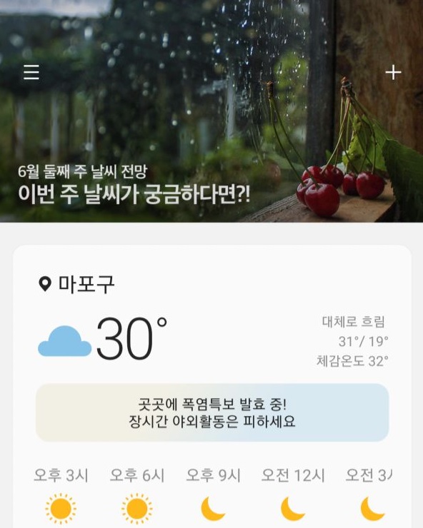 삼성 스마트폰의 기본 날씨 앱을 업데이트 하면, 위젯의 맨 위에 커다란 광고가 나온다고 합니다.