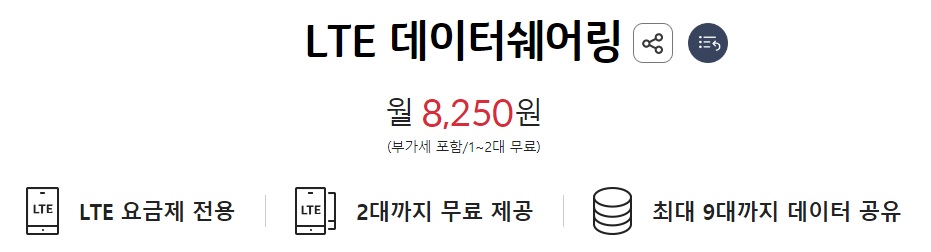 -- 최대 2대까지 무료로 LTE 데이터쉐어링을 이용할 수 있고, 3번째 기기부터 요금이 부과